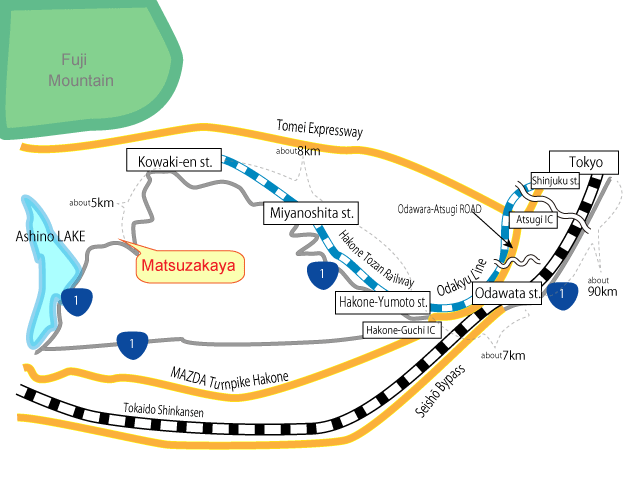 | การเดินทาง; | จากสถานีรถไฟ Odawara JR มุ่งหน้าสู่สถานีรถไฟ Hakoneyumoto (สาย Odakyu) หลังจากนั้นให้ขึ้นรถประจำทางมาสู่เมืองฮาโกเนะมาชิ ลงที่ป้ายอาสิโนยุ แล้วเดินต่ออีก 3 นาที |