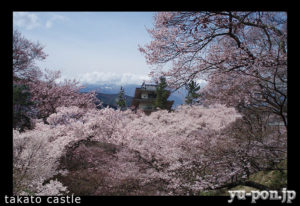 ปราะสาท Takato ตั้งอยู่บนเนินเขาลูกเล็กๆที่รายร้อมไปด้วยภูเขามากมาย ทำให้อากาศตอนกลางคืนหนาวกว่าตอนกลางวัน ยิ่งไปกว่านั้น การชมดอกซากุระบานระหว่างตอนกลางวันกับตอนกลางคืนของที่นี่ให้บรรยากาศที่แตกต่างกันโดยสิ้นเชิง