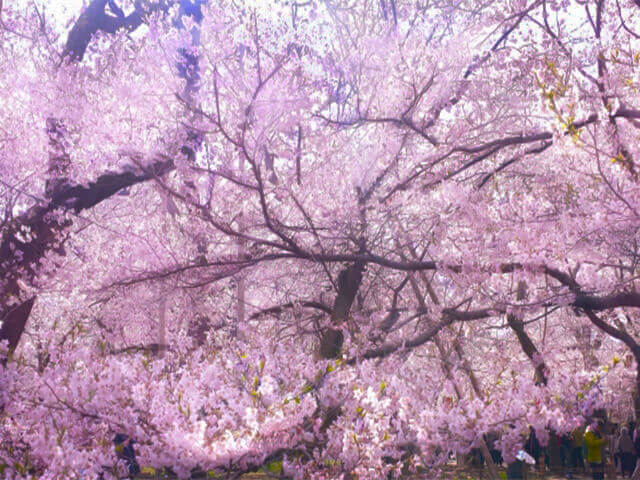 ในตอนกลางวัน เราจะสามารถเห็นซากุระสายพันธุ์ Edohigan ขนาดเล็กๆ เบ่งบานอยู่รอบปราสาทในช่วงเทศกาลชมซากุระ แต่ในตอนกลางคืนจะพิเศษกว่า เพราะเราสามารถเดินเล่นผ่านทางเดินที่เต็มไปด้วยแสงไฟ มีชื่อเรียกว่าถนน Yozakura